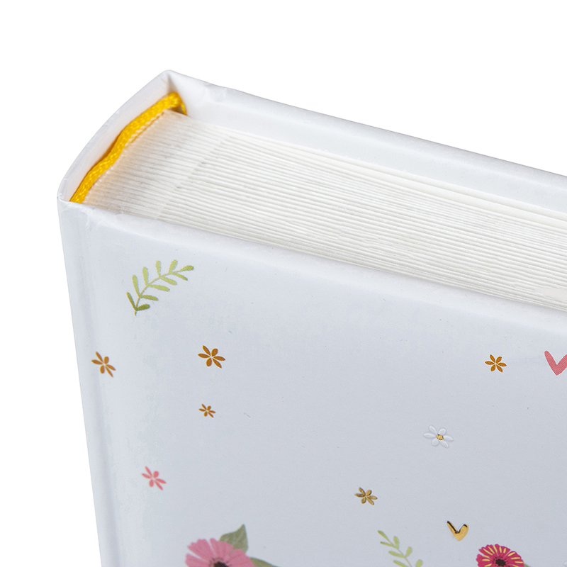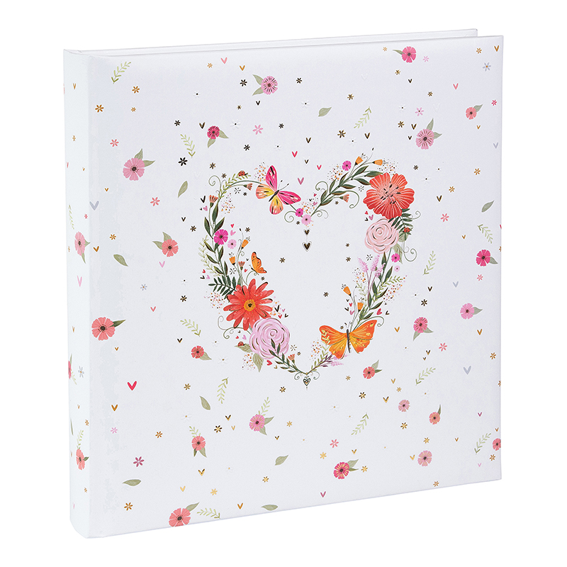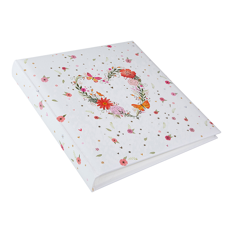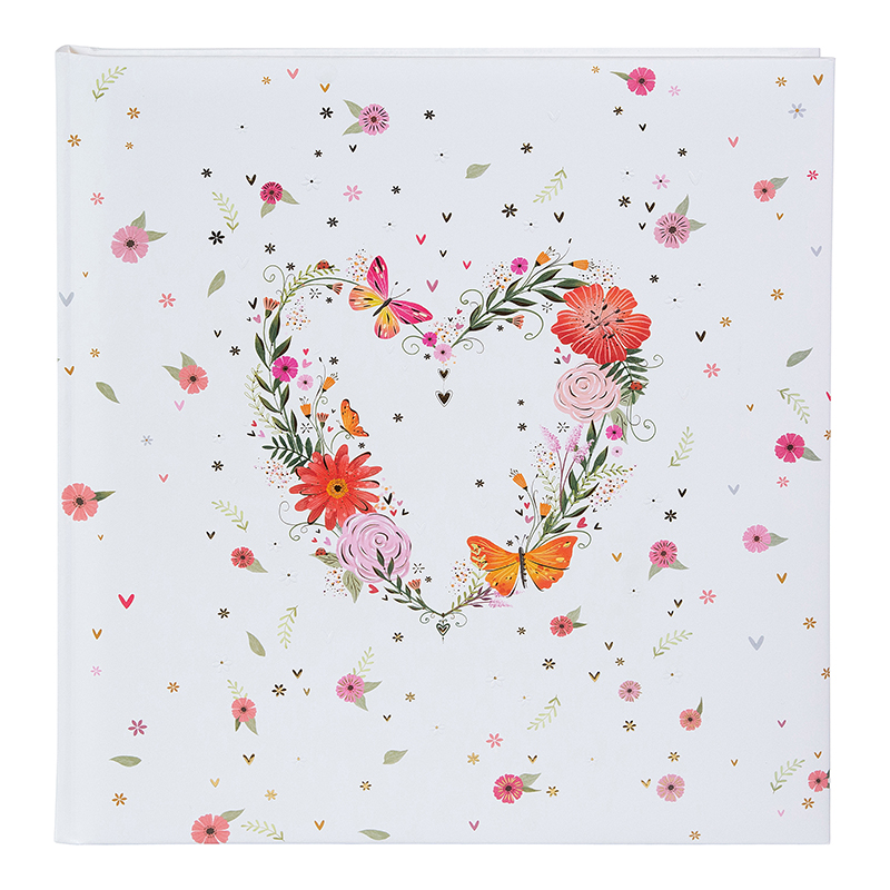 - Das Fotoalbum "Floral Embrace" verbindet romantische Eleganz mit zeitlosem Design. Der herzförmige Blumenkranz mit zarten floralen Details symbolisiert Liebe und Verbundenheit und macht das Album zu einem stilvollen Highlight. Es bietet ausreichend Platz zur individuellen Gestaltung und wird zu einem wertvollen Erinnerungsschatz, den man auch Jahre später immer wieder gerne zur Hand nehmt.