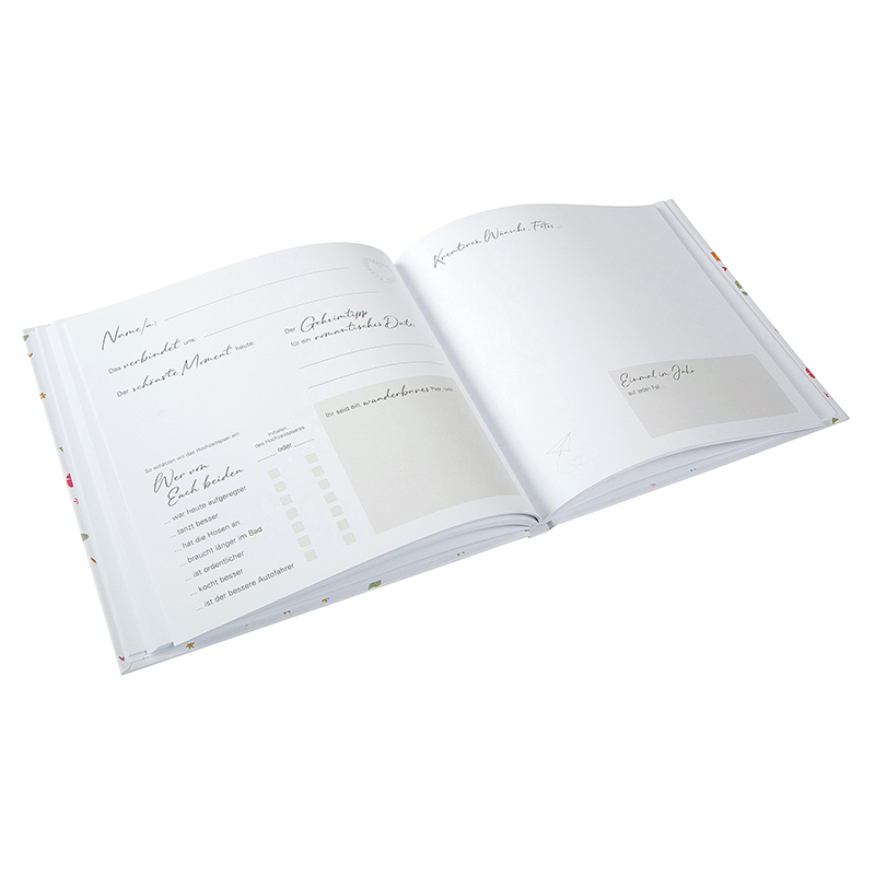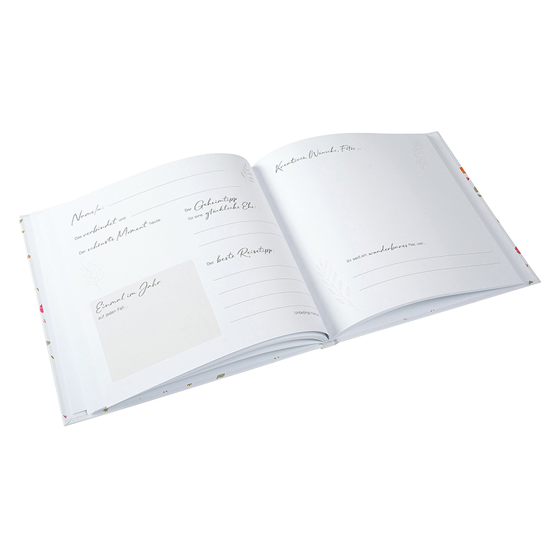 - Das Hochzeitsgästebuch "Floral Embrace" verbindet romantische Eleganz mit zeitlosem Design. Der herzförmige Blumenkranz mit zarten floralen Details symbolisiert Liebe und Verbundenheit und macht das Gästebuch zu einem stilvollen Highlight jeder Hochzeit. Es bietet den Gästen Platz für persönliche Wünsche und liebe Worte und wird zu einem wertvollen Erinnerungsschatz, den man auch Jahre später immer wieder gerne zur Hand nehmt.