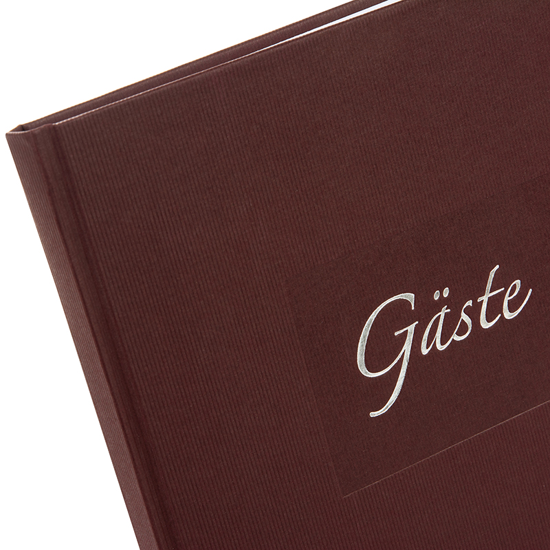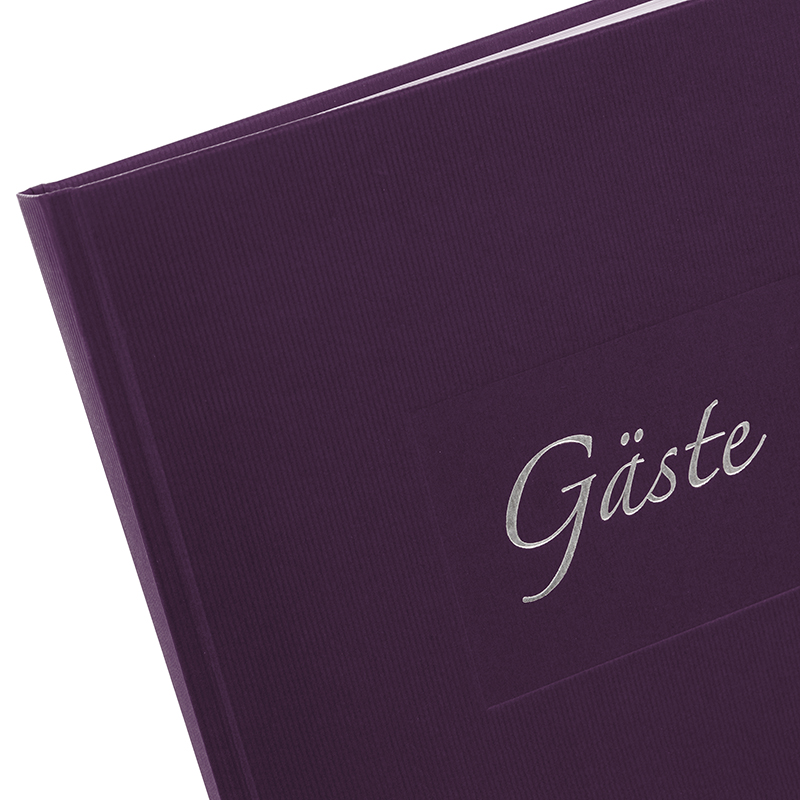 • Der Einband des Gästebuchs besteht aus einem gerippten Papier, welches sich durch eine besondere Haptik hervorsticht. Die weißen Seiten sind aus 110 Gramm starkem Schreibpapier.