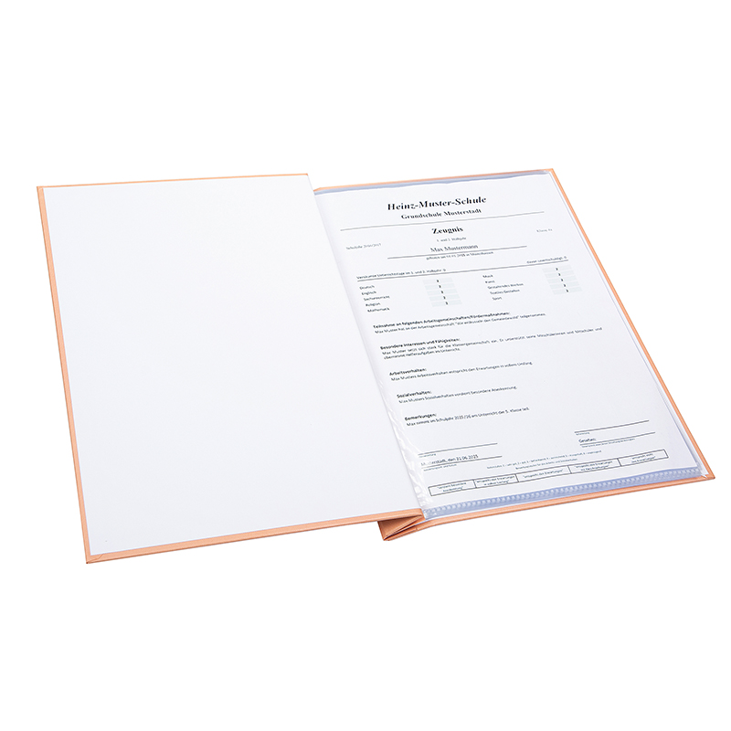 - Die feine Leinenstruktur verleiht dieser Zeugnismappe eine ruhige, moderne Ausstrahlung. Sie schafft einen geschützten Platz für Zeugnisse und wichtige Unterlagen und bewahrt sie geordnet an einem Ort auf. Die 12 Sichthüllen bieten Raum für bereits Erreichtes und lassen sich bei Bedarf erweitern, sodass die Mappe über lange Zeit hinweg begleiten kann. So verbindet sie eine klare Gestaltung mit praktischem Nutzen und wird zu einem verlässlichen Rahmen für Dokumente mit persönlicher Bedeutung.