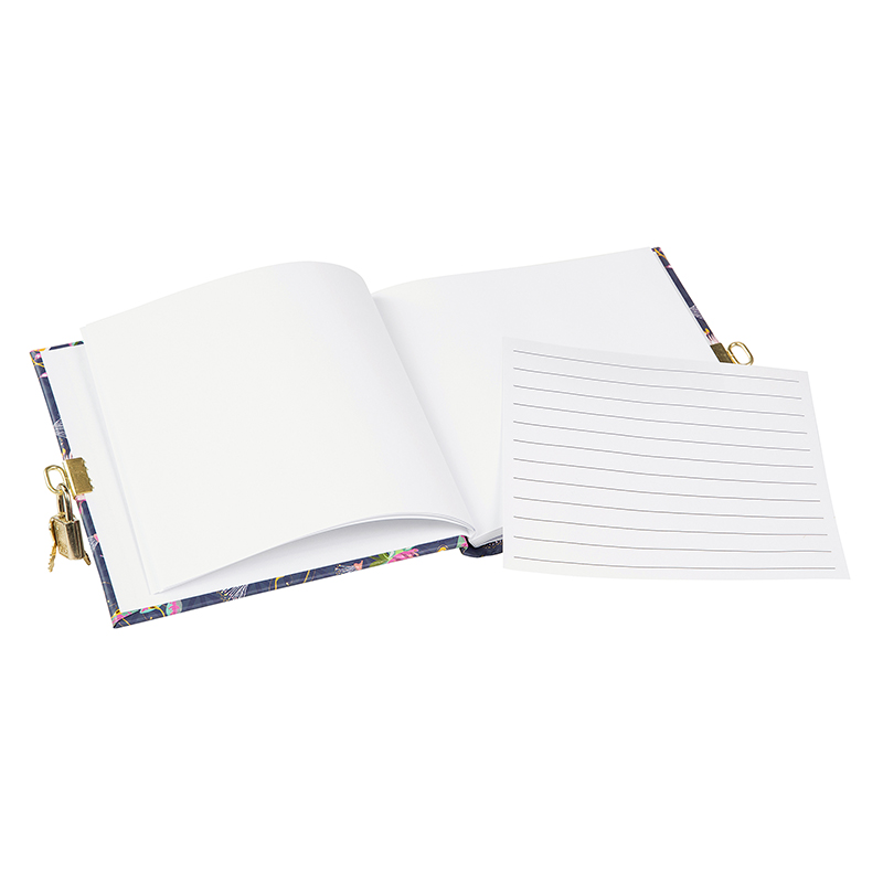 - Das Tagebuch in der praktischen Größe von 16,5x16,5 cm überzeugt nicht nur durch ein schönes Design, sondern auch durch eine herausragende Qualität. Kleine und große Geheimnisse, die ersten Abenteuer oder der normale Alltag kann auf 96 weißen Seiten festgehalten werden. Die Seiten im inneren sind blanko und haben eine Grammatur von ca. 100 g/m². Selbstverständlich hat jedes Tagebuch ein farblich passendes Schloss in gold oder silber, damit die Einträge wirklich privat bleiben.