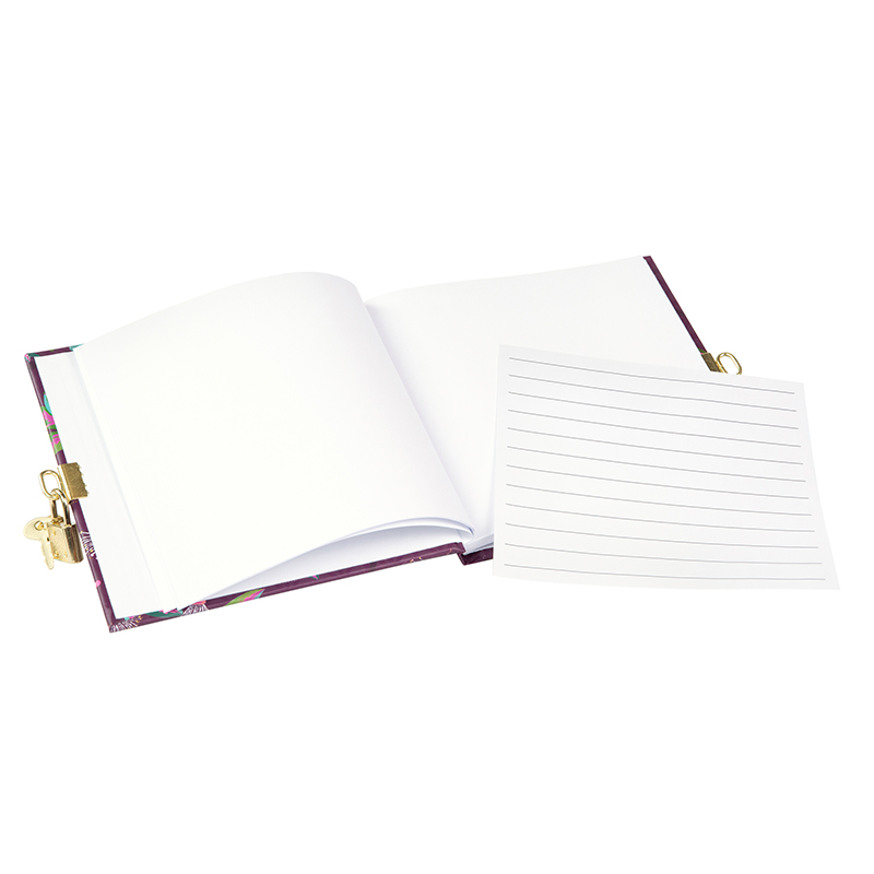 - Das Tagebuch in der praktischen Größe von 16,5x16,5 cm überzeugt nicht nur durch ein schönes Design, sondern auch durch eine herausragende Qualität. Kleine und große Geheimnisse, die ersten Abenteuer oder der normale Alltag kann auf 96 weißen Seiten festgehalten werden. Die Seiten im inneren sind blanko und haben eine Grammatur von ca. 100 g/m². Selbstverständlich hat jedes Tagebuch ein farblich passendes Schloss in gold oder silber, damit die Einträge wirklich privat bleiben.