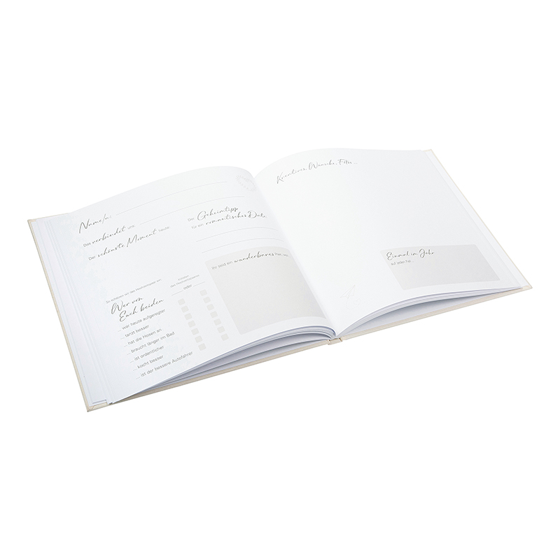 - Herzensmoment überzeugt mit einem hochwertigen Leineneinband, einem liebevollen Fotoausschnitt und einem dezenten Herzdetail. Das zeitlose Design macht Fotoalbum und Gästebuch zu stilvollen Erinnerungsstücken - ideal für Hochzeiten, den Valentinstag oder als persönliches Geschenk für besondere Menschen. Erhältlich in drei Farben.
